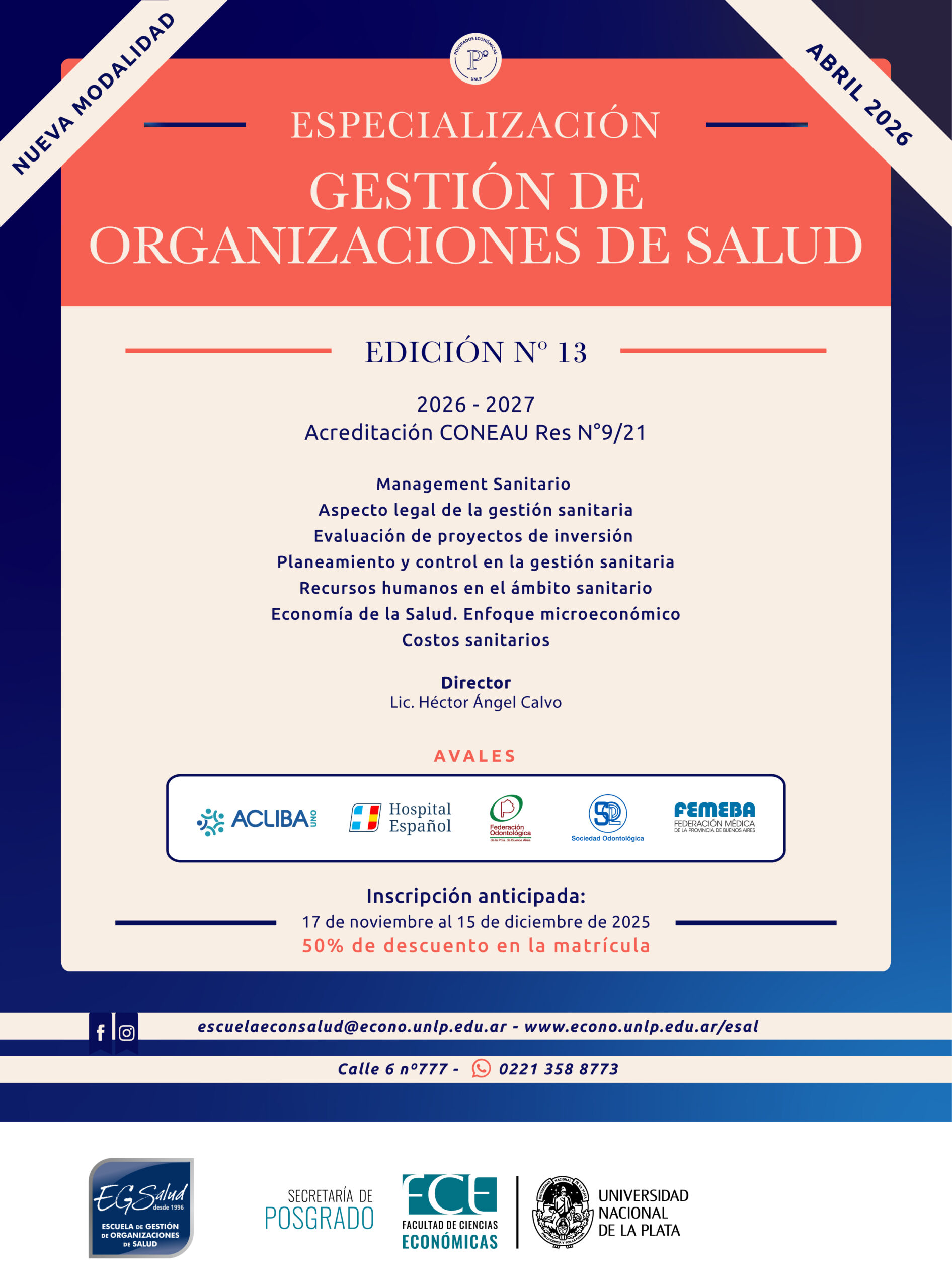 50% de descuento en la matrícula, abonando hasta el 15 de diciembre