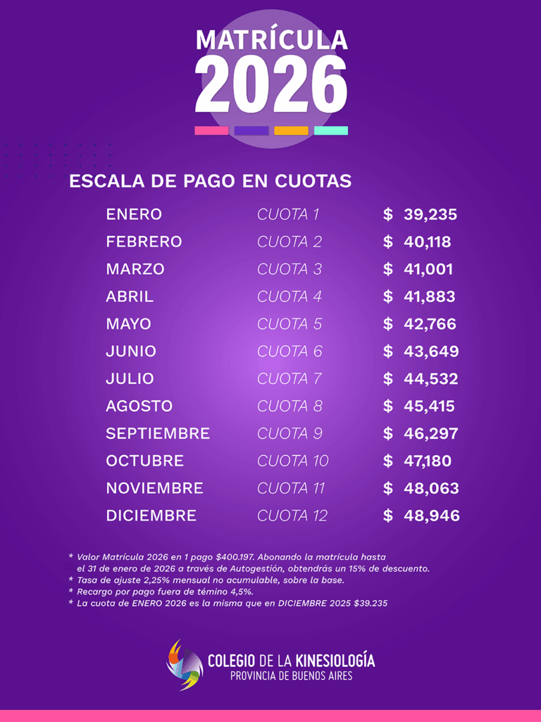 En la última reunión del Consejo Directivo, realizada el 13 de diciembre de 2025, se definió el valor de la Matrícula Anual 2026, la cual regirá a partir del 1° de enero.